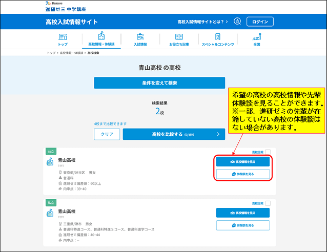 <高校入試情報サイト>「入試情報」県別ページで先輩体験談、県別情報が確認できます