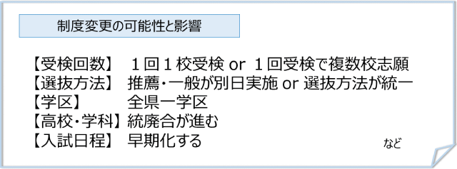 現中2生が受験する2023年度(令和5年度)入試から、愛知県の公立高校では現行の入試制度からの大きな変更が予定されています。どのような点が変更されるのか、ご紹介いたします。
