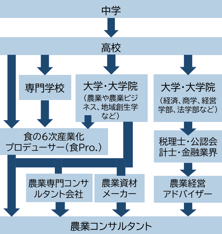 農業や農業ビジネスについての知識や経験があることは必要なので、大学や大学院で農業や農業ビジネス、地域創生学などを学んだあと、農業専門のコンサルタント会社などに就職する方法が1つあります。