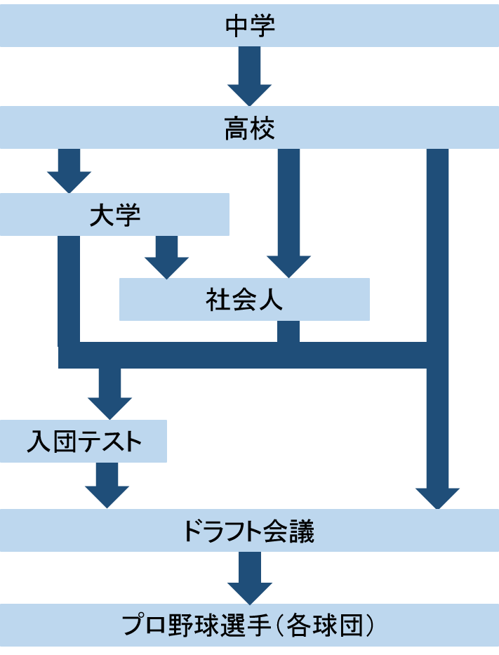 また、各球団が個別に行う入団テストに合格してプロ野球選手になる人もいます。