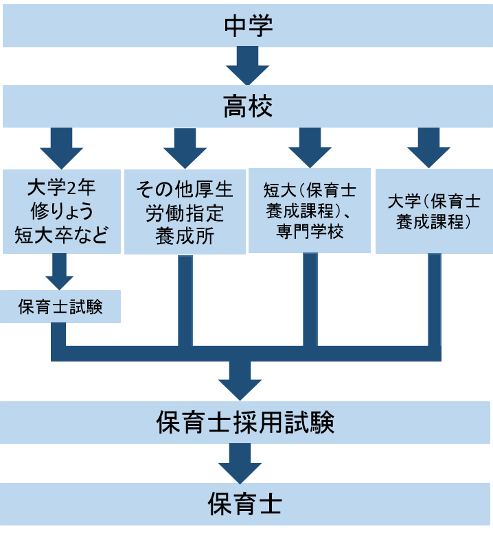 大学や短大、専門学校などの保育科などで保育士養成課程を卒業するか、都道府県が行う保育士資格試験に合格する方法があります。