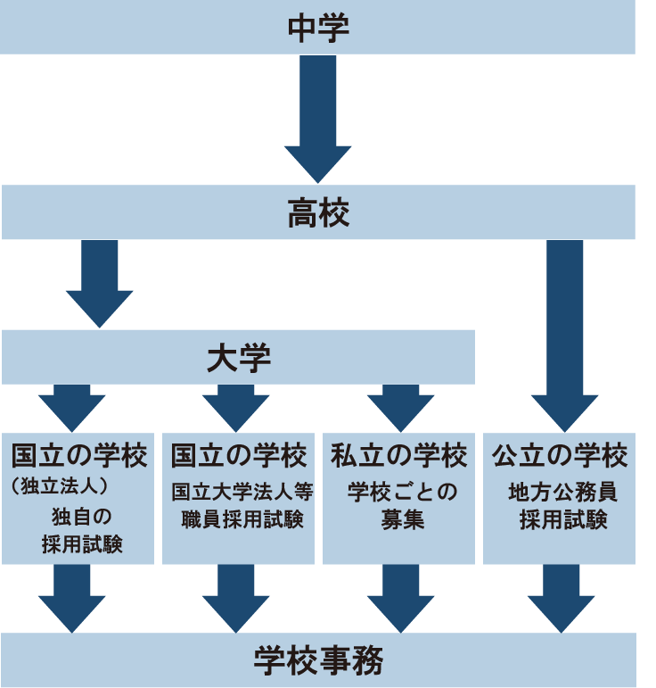 公立の学校職員は地方公務員として働いているため、各都道府県が定期的に実施する地方公務員採用試験に合格する必要があります。