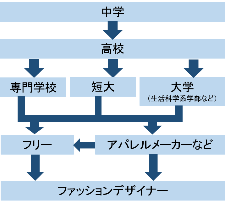 *高校は普通科で学ぶか、高校からファッションを学べる専門学科に進む方法もあります。