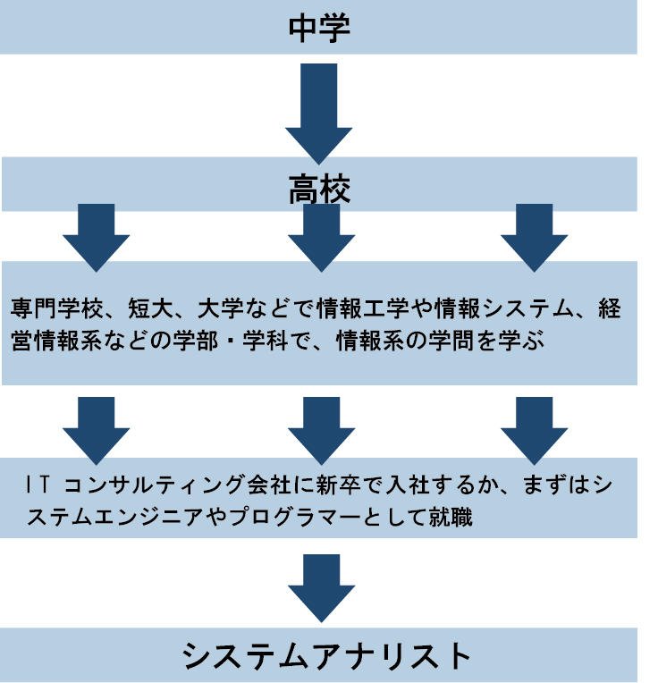 それには専門学校、短大、大学などで情報工学や情報システム、経営情報系などの学部・学科で、情報系の学問を学ぶと役立ちます。