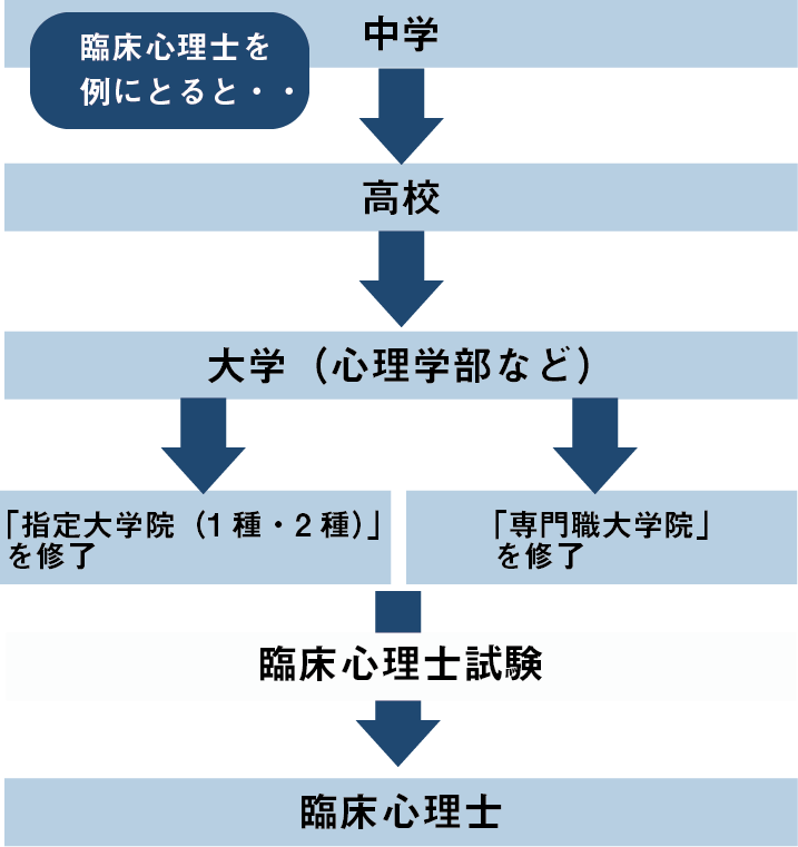 (公認心理師は大学卒業後、実務経験を積んで受験できる場合があります))