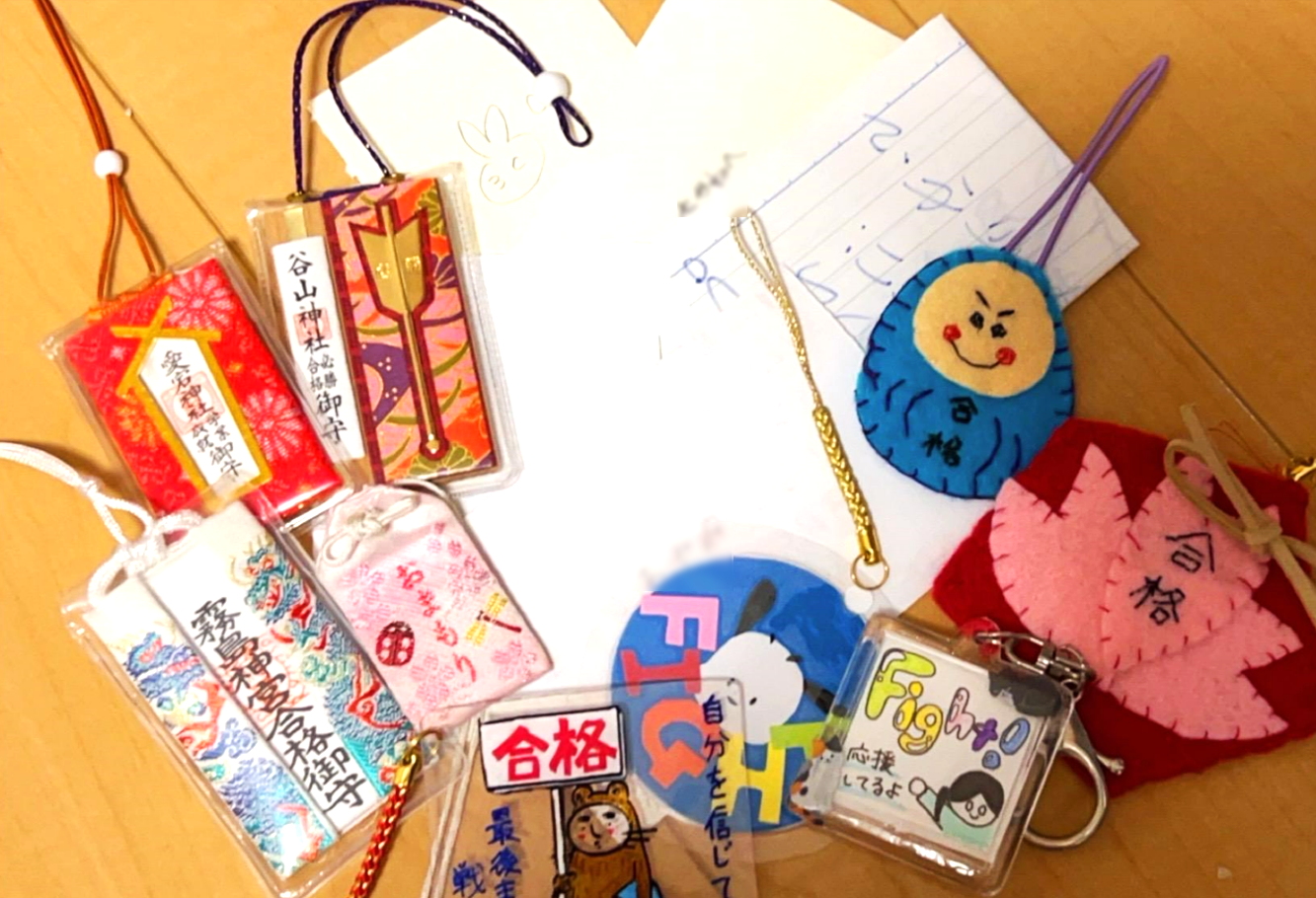 私は周りに恵まれて、たくさんの人に受験を応援してもらえました。受験が終わっている友達からは、お守りと手紙をもらえましたし、家族もお守りをくれました。本番は緊張していたのですが、お守りや手紙を見るたびに、なんだかうれしい気持ちになって、「がんばろう」と思えました。