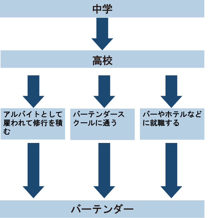 3つ目は、資格をとったり、関連の通信講座を受けたりして知識や技術を学んだ後、バーやホテルなどに就職するルートです。
