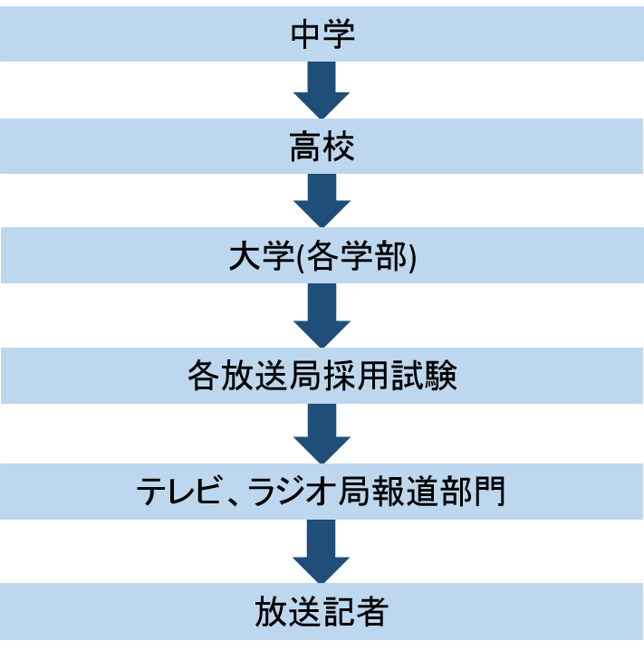放送局の採用試験に合格する必要があり、面接では学生時代の経験も重視される