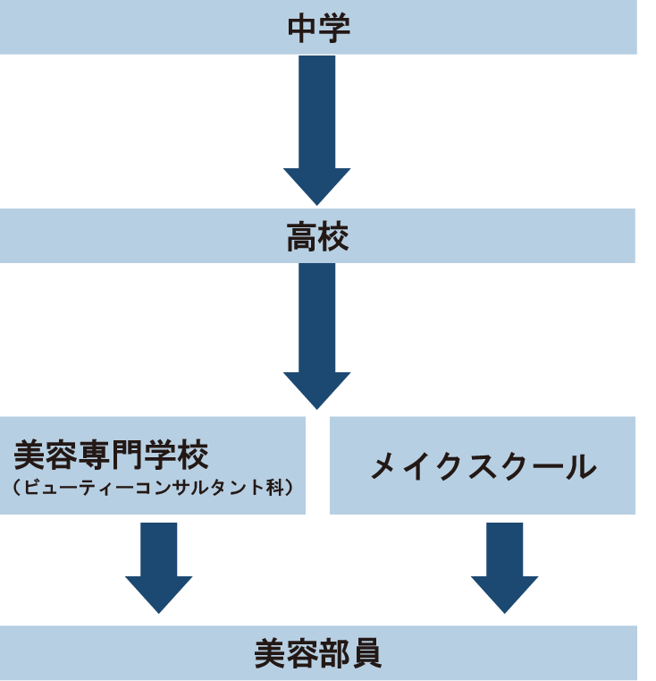 就職する前から、中学や高校を卒業した後、美容専門学校で「ビューティーコンサルタント科」などを専攻したり、メイクスクールに通ったりする人もいます。