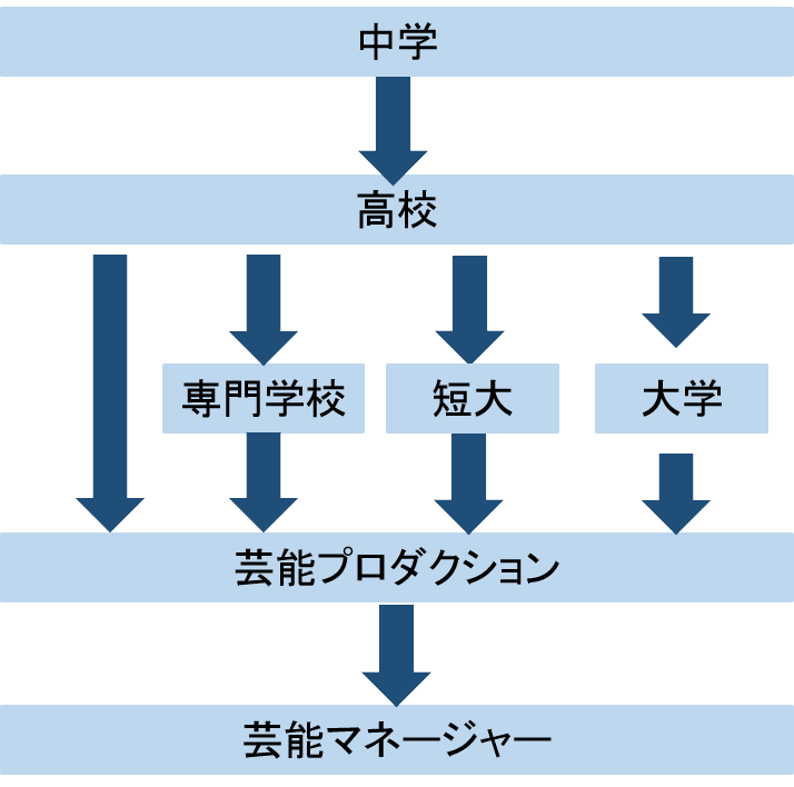 基本的には、学歴よりも人柄(ひとがら)、エンターテインメントが好きで、芸能界で働きたいという熱意、体力、行動力などが重視されています。
