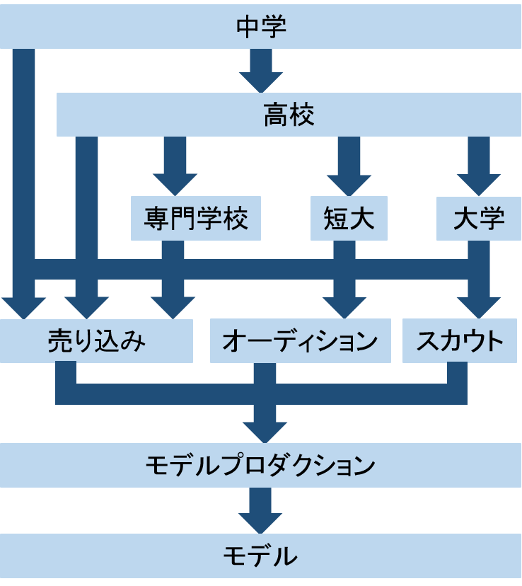キャリアの第一歩は、モデルプロダクションに入ることです。