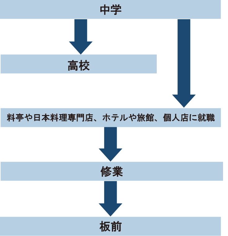 一般的なルートは、中学や高校卒業後、若いうちにお店に入って修業を始める方法です。