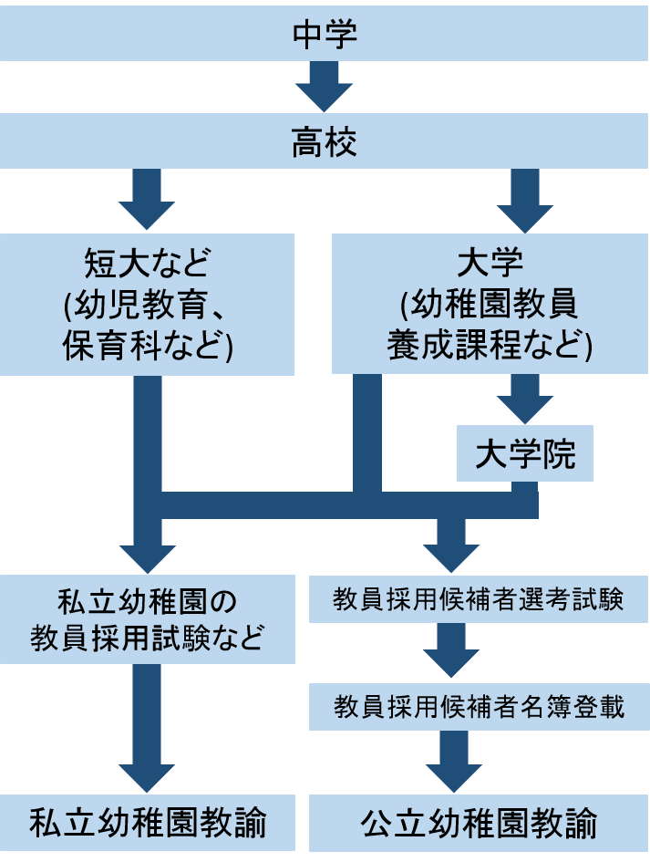 公立は各自治体の教員採用候補者試験、私立は園ごとの採用試験や選考を受けて就職します。
