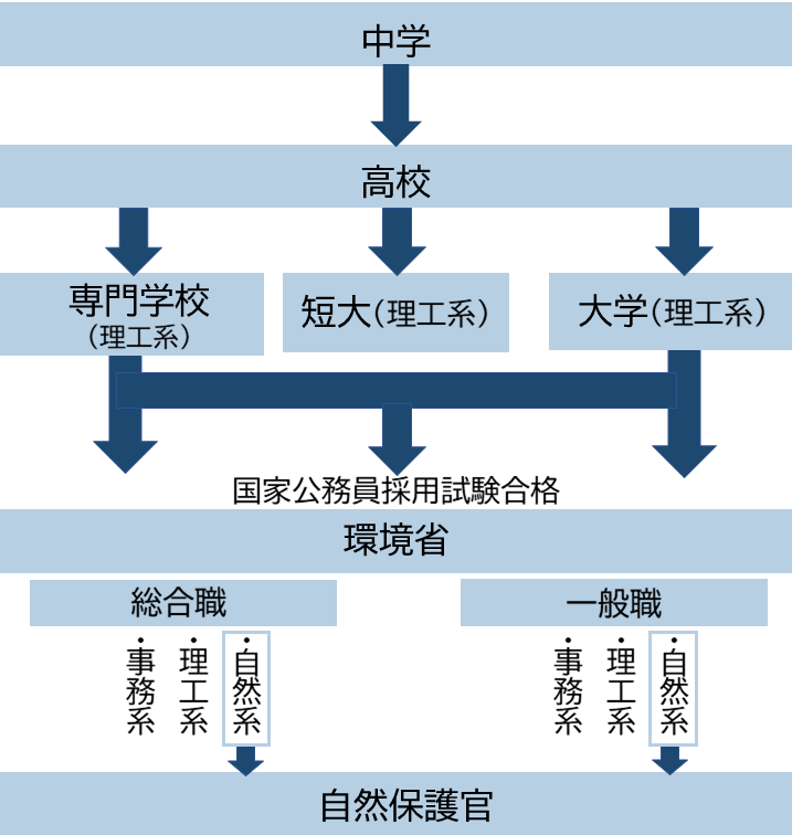 自然保護官をめざすなら、総合職か一般職の「自然系職員」として採用され、自然保護官に任命される必要があります。