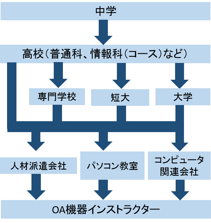 専門学校の中には、OA機器インストラクターを養成するコースを設けているところもあります。