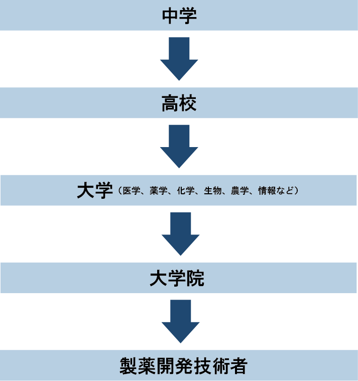 製薬開発技術者になるには、大学の理系(医学、薬学、化学、生物、農学、情報など)の学部に進学し、研究職として採用されるには大学院へ進学して研究経験を積むことが有利といわれています。