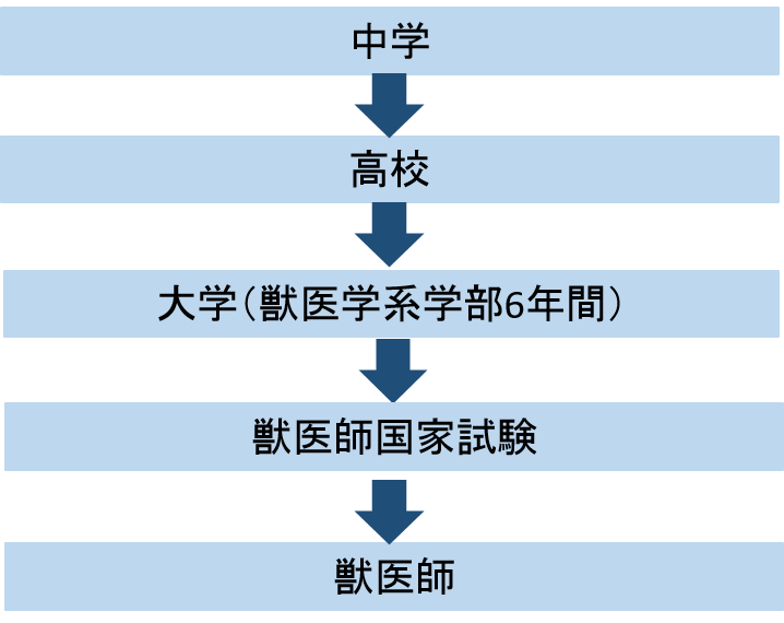 獣医師になるには、獣医学課程のある大学で6年間学び、卒業してから獣医師国家試験を受けて合格します。